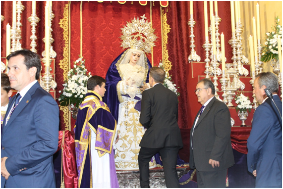 A la finalización de la Eucaristía nuestra Sagrada Titular quedó expuesta en Devoto Besamanos y todos los hermanos y hermanas que así lo desearon pudieron testimoniar su veneración por tan Bendita Imagen.
