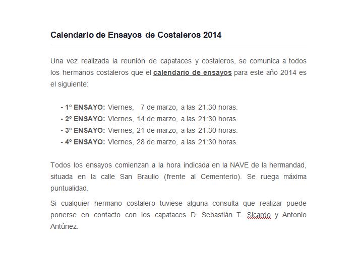Citación a los costaleros de la Hermandad.