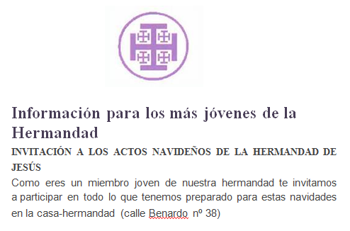 Invitación a los actos navideños de la Hermandad de Jesús