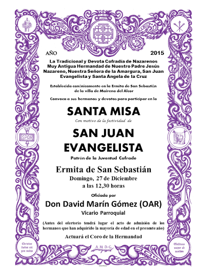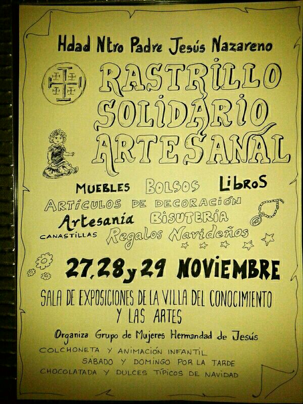 Read MoreRastrillo Solidario. Del 27 al 29 de noviembre de 2015. Pestiño Solidario. 6/7 de diciembre de 2015. “Convivencia en Hermandad…
