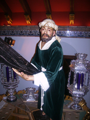 En sus orígenes era talla completa de madera noble y policromado de fecha y autor desconocido. Fue restaurado en 1983 por el incipiente imaginero Francisco Berlanga. Era imagen que podía procesionar en su policromado natural o bien, como lo hizo muchos años vestido con ropa a la usanza de la época.